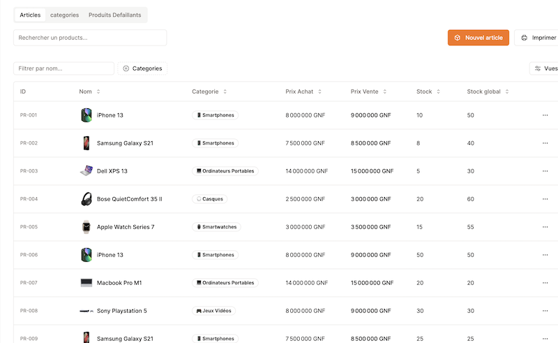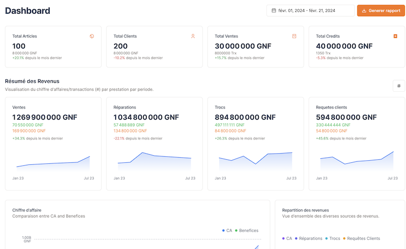 Meubles | 198.6M GNF | 180M GNF | 124 unités | +10.3% | +8.6% | +11.4% |